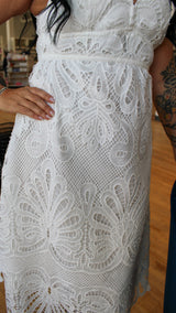So feminine and effortlessly pretty — this white lace dress is one of those pieces that instantly feels special the second you put it on. It features a flattering v-neckline, defined waist, and the sweetest lace detailing all throughout for a soft, romantic look. Fully lined so you don’t have to worry about it being see-through.