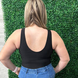 This is going to be your favorite item in your closet! This bodysuit is not only smooth like butter, but is thick too! No need for a bra. Comes in two colors, black and white pearl.