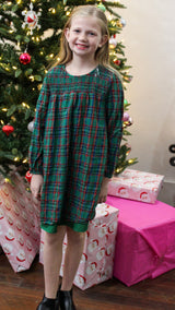 A green and red plaid holiday dress for girls.