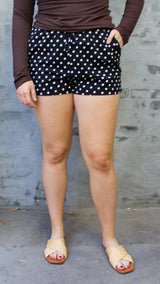 These black and white polka dot shorts are the perfect mix of playful and chic 🖤🤍 Featuring a flattering high-rise fit with an adjustable tie waist, they’re designed for comfort while still giving you a put-together look. The lightweight, flowy fabric makes them easy to wear on warm days, and the classic print adds just the right amount of fun to your outfit.