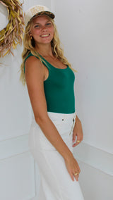 A square-neckline bodysuit that comes in 2 different colors.