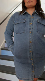 This Thread & Supply denim dress is an effortless piece you’ll reach for again and again. It features a classic button-down front, structured collar, and front chest pockets that give it that timeless denim look. The soft denim fabric makes it comfortable for all-day wear while still feeling put together.