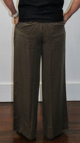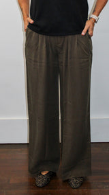 A pair of pants with side pockets and an adjustable waistband.