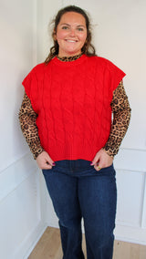 A long-sleeve cheetah print mesh shirt to wear under a solid colored sweater vest.