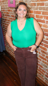 A tank top bodysuit with a v-neckline.