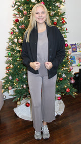 A mocha colored jumpsuit that is modal for ultimate comfort.