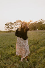 A black oversized crewneck. Pairs perfectly with any bottoms.