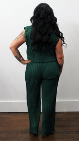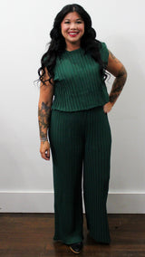 A pair of stretchy pleated pants. Pairs for a matching set with our Ruth Top.