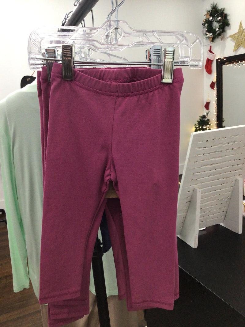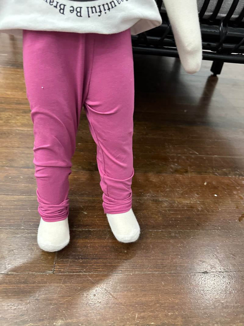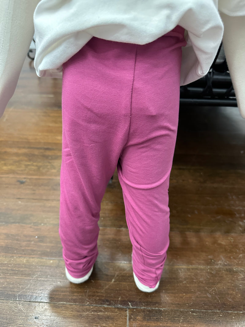 A pair of pink/purple colored leggings that are great to throw the kiddos in.