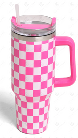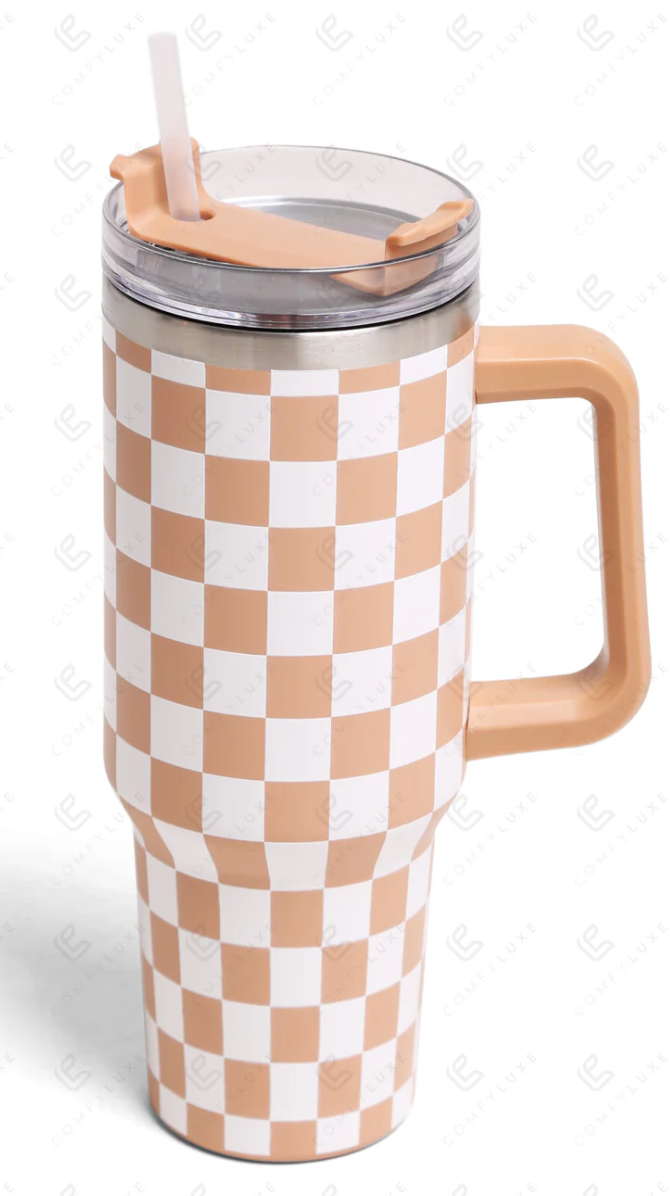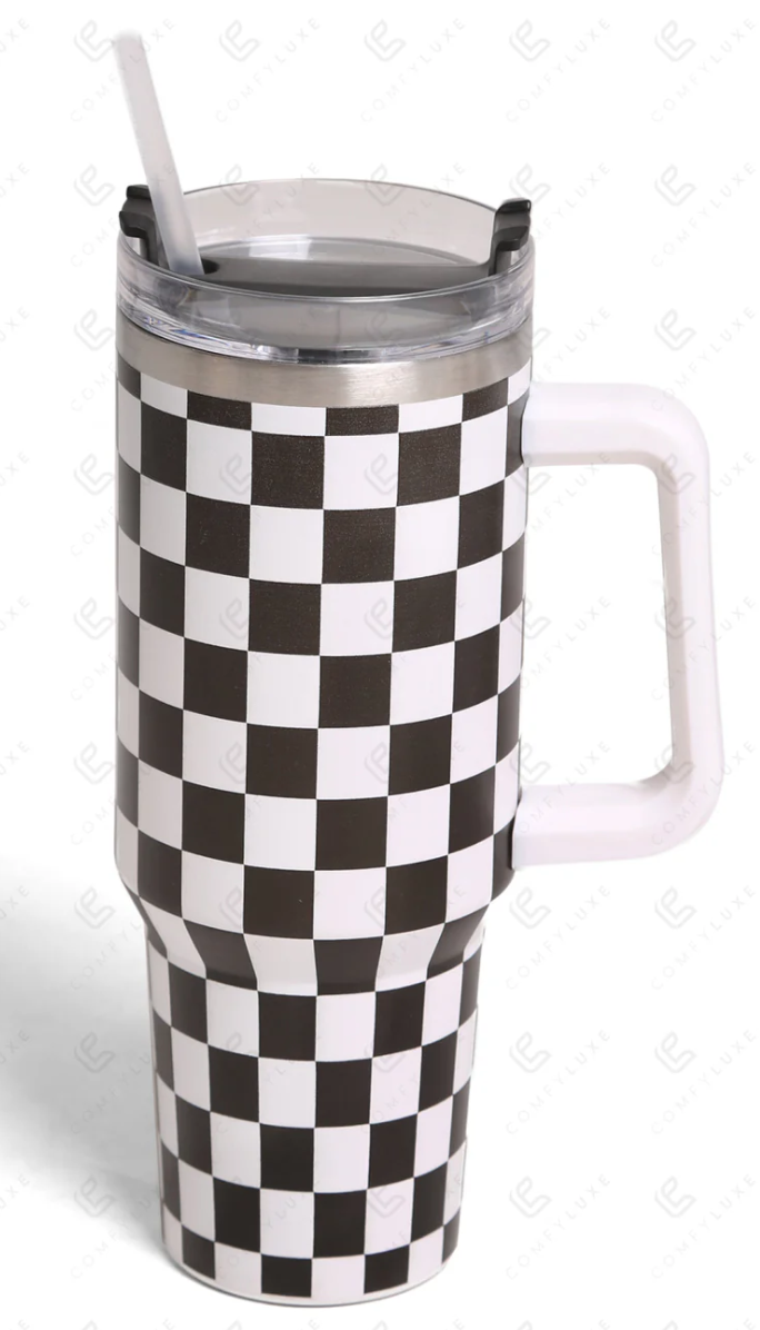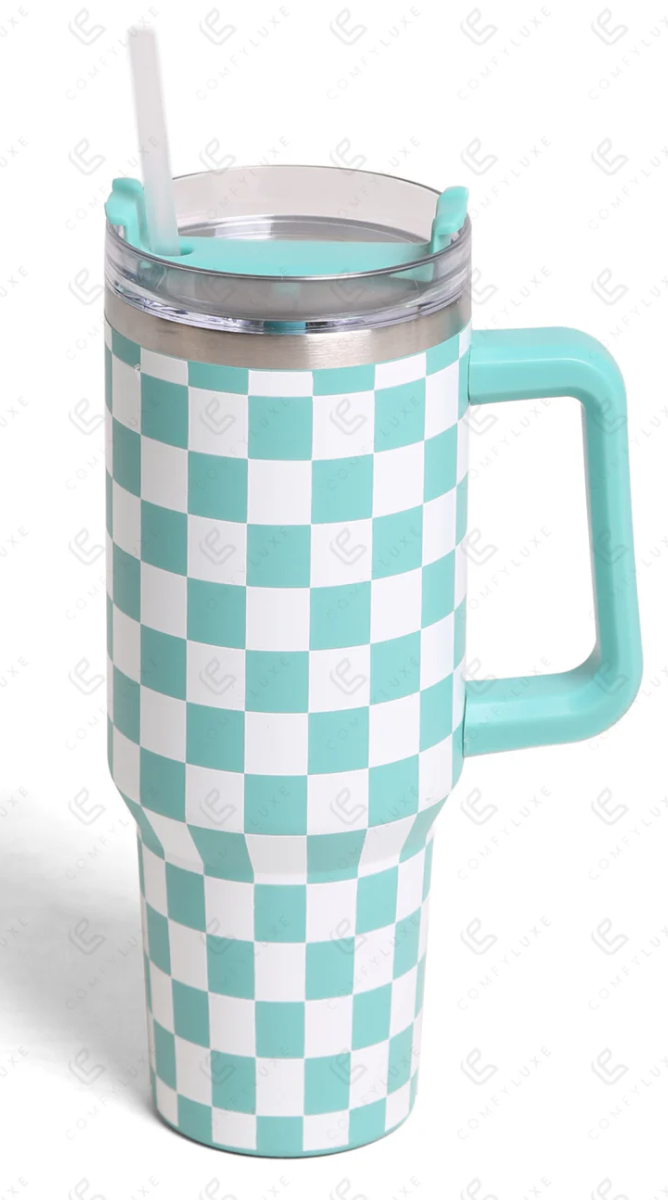 A 40 oz tumbler with a handle that fits in your cup holder. This tumbler comes with 2 straws.