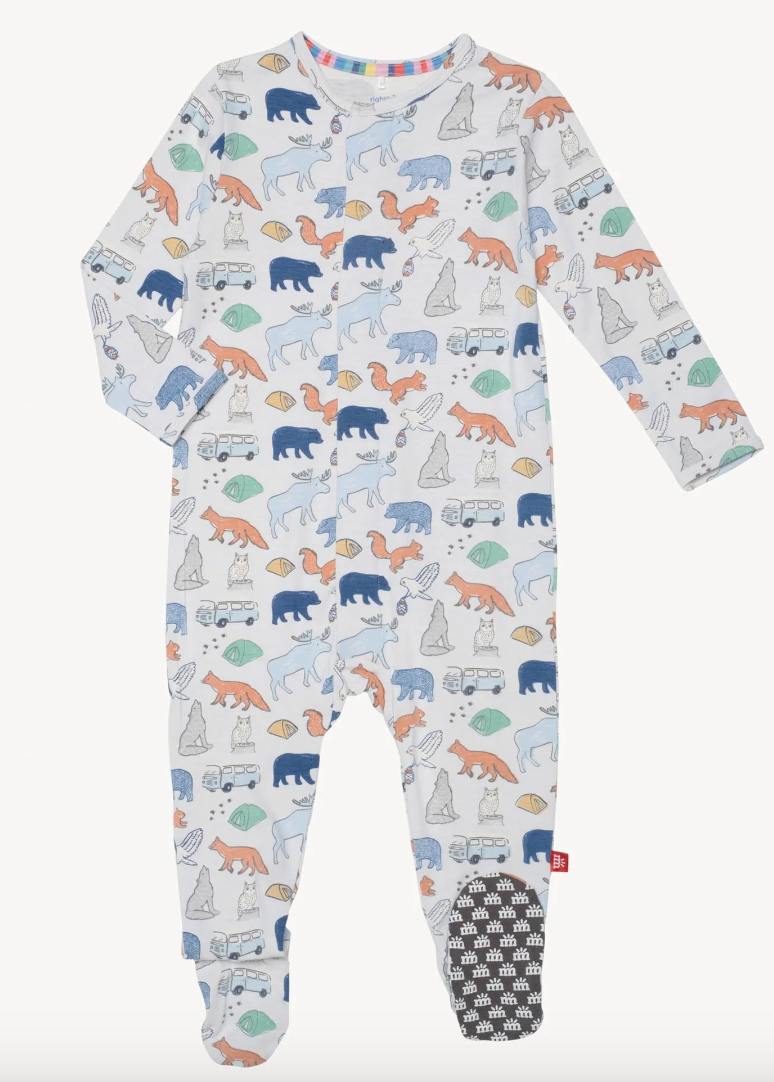 no more squeezing baby into annoying tight-fit footies—our patent-pending RightFit™ fabric gives baby room to wiggle with a loose-fitting footie that's naturally flame retardant without the use of toxic chemicals. Soft, magnetic + comfortable—get ready for this parent game changer. goodbye tight fit, hello RightFit™.